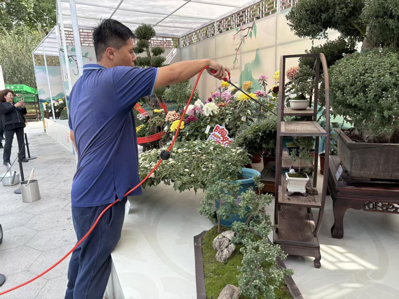 陶然亭公园第三届菊花文化节同样精彩纷呈,5000平方米展区内20余万株秋日花卉绽放,东门“叩秋扉”主题花坛成为游客打卡热点。公园园艺职工每日穿梭花丛逐株检查花卉长势、更换凋谢植株,调节湿度、修剪花型,用行动维持生态美景。为让游客深度感受菊文化,公园推出15场“亭的秋日献礼”科普活动,每日园林专业职工沿主干道导赏,讲解花坛设计理念与花卉养护知识,市民王女士感慨“赏菊还能学生态知识”,生态理念随花香传递。